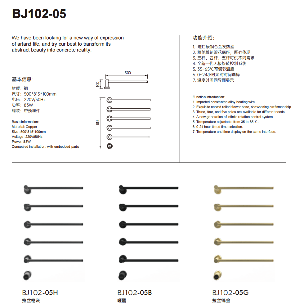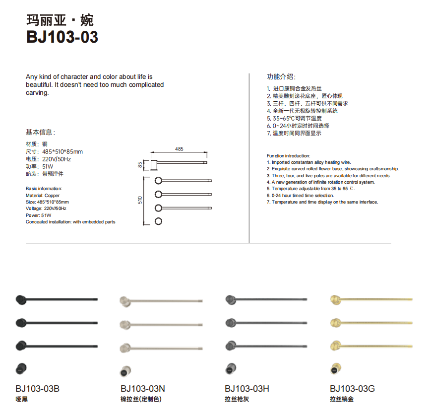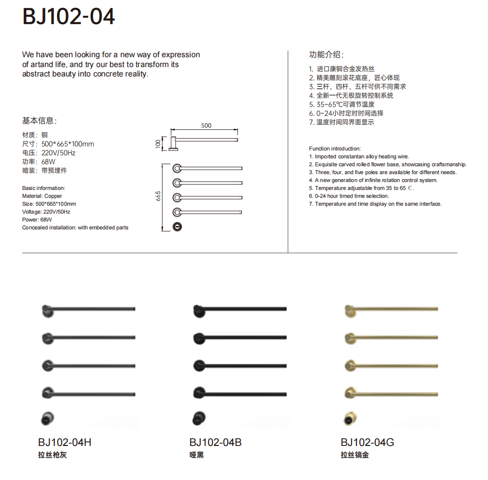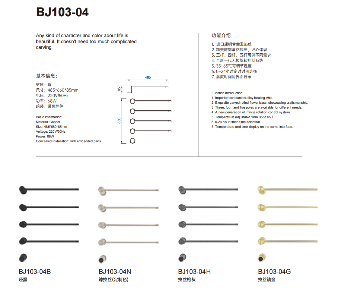 电热毛巾架横杆BJ102 BJ103 BJ402