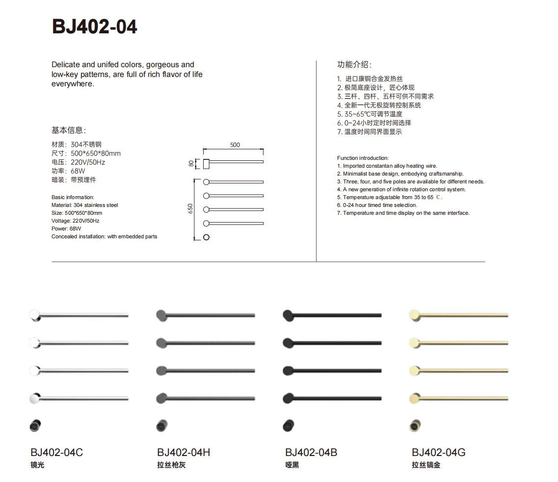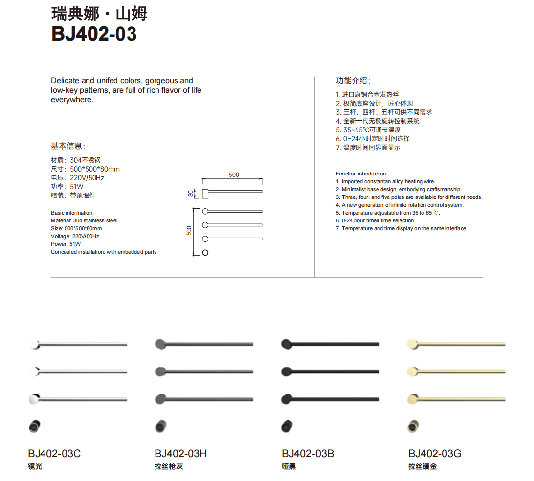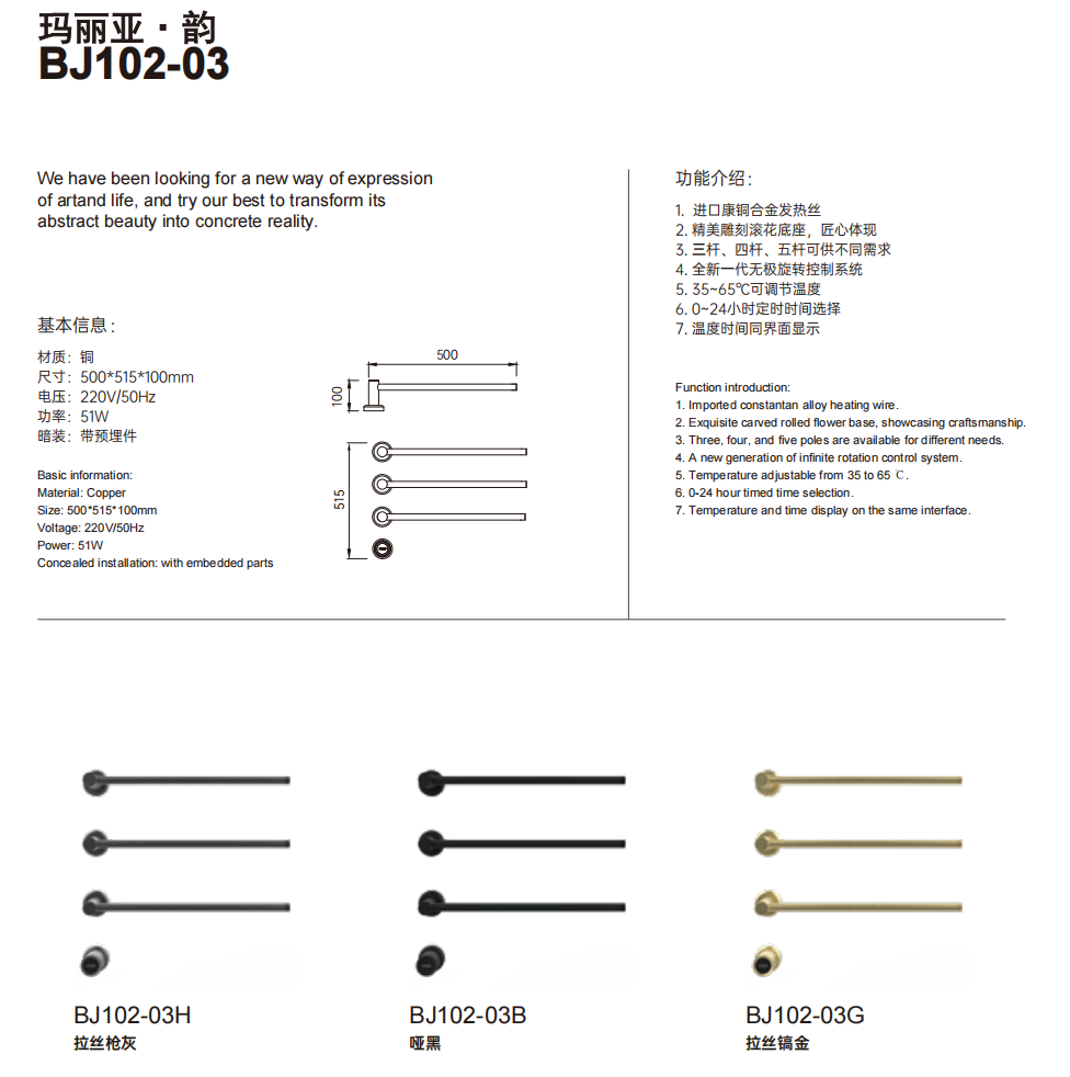 电热毛巾架横杆BJ102 BJ103 BJ402