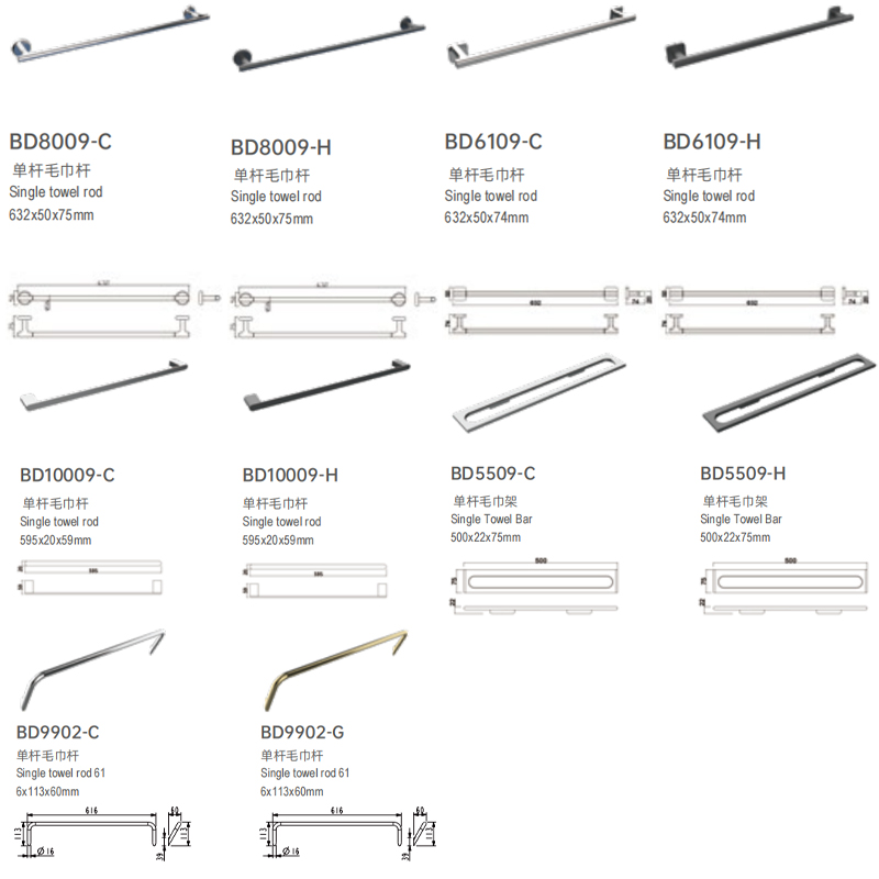 毛巾杆BD5509 BD8009 BD6109 BD10009 BD9902